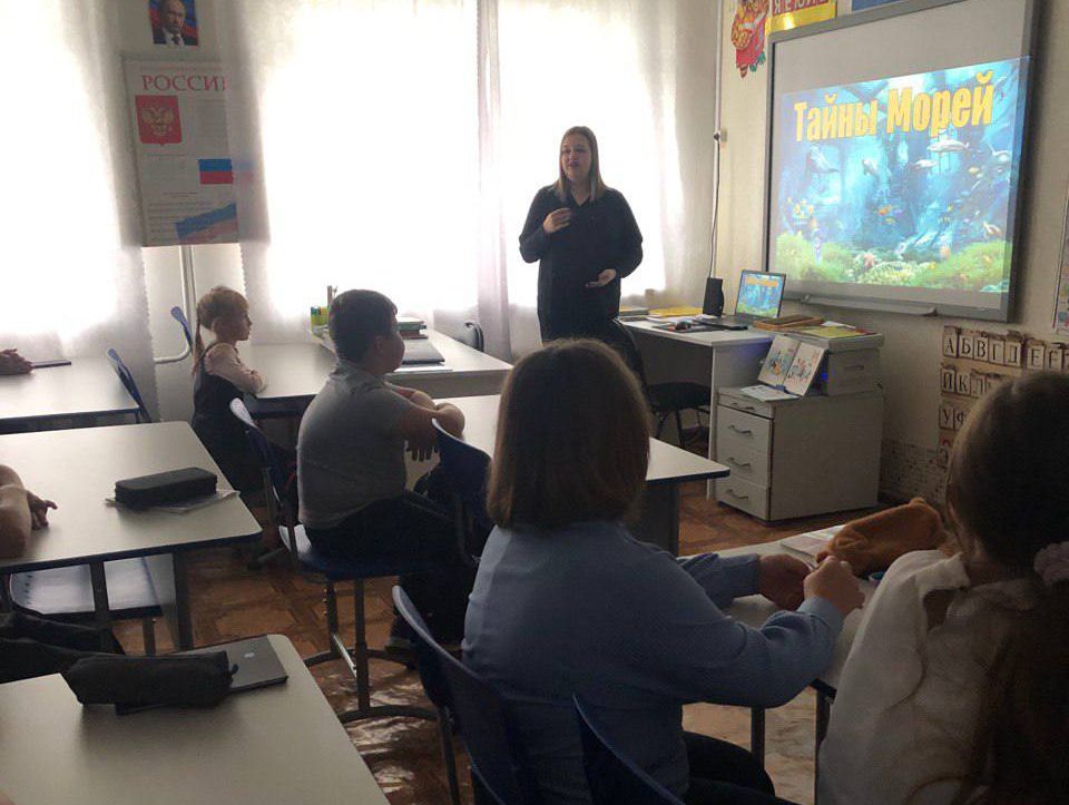 В этот день класс превратился в настоящий батискаф. Вместе с библиотекарем, словно умелые водолазы, ребята совершили погружение в тайны морских глубин. С каждым новым рассказом о морских обитателях они опускались все глубже, знакомясь с удивительными животными — от крошечных рыбок до гигантских китов.