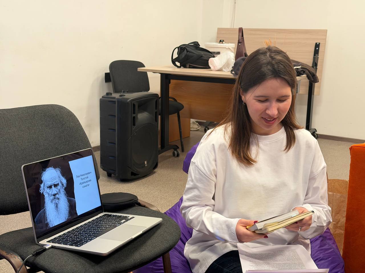 26.01.2026Состоялось очередное заседание книжного клуба «Люди, книги и кофе», посвящённое произведению Льва Николаевича Толстого «Крейцерова соната». В начале встречи участникам была представлена краткая информация о биографии писателя, его взглядах и истории создания данного произведения.
