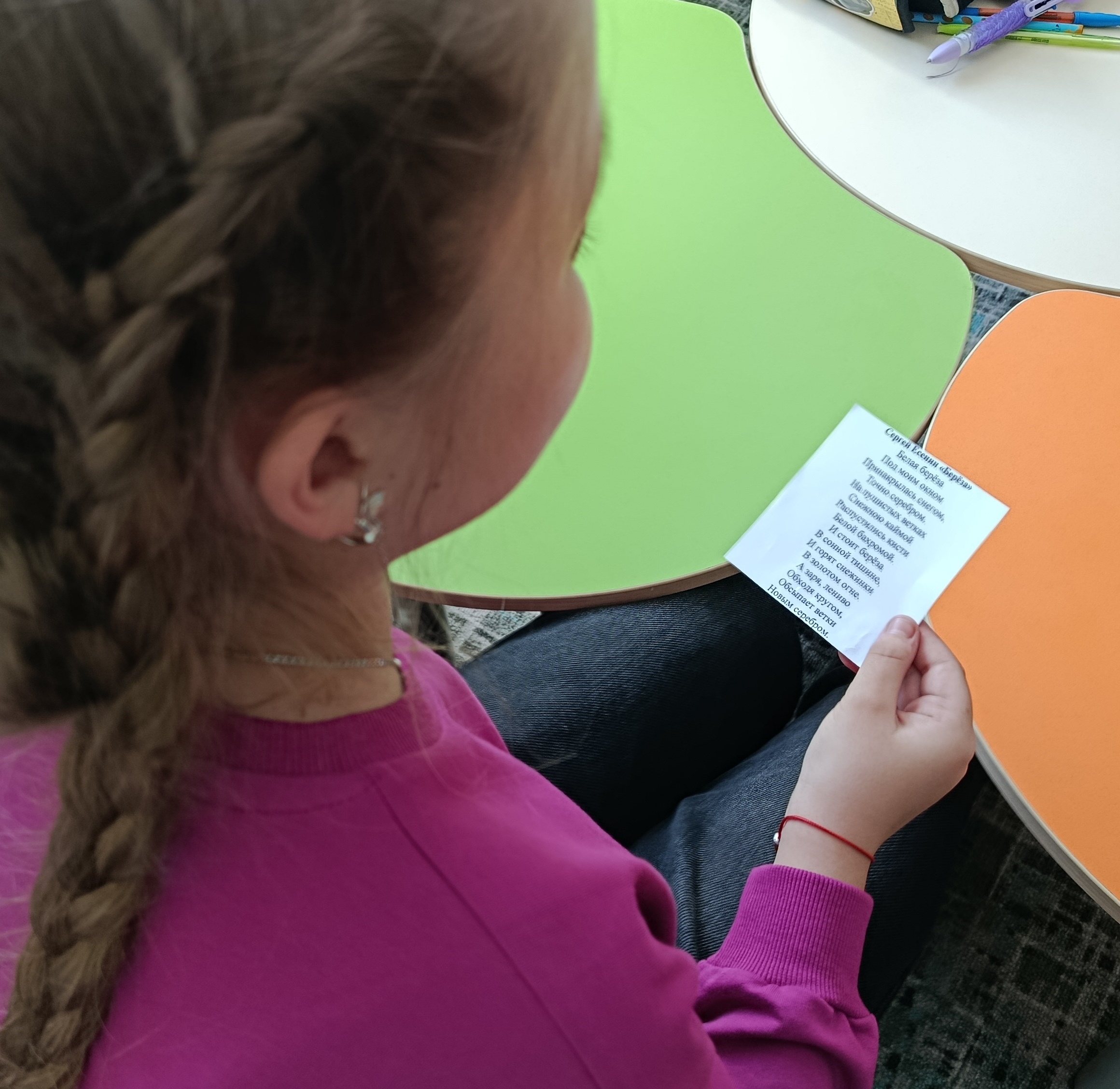Юные читатели по желанию зачитывали любимые стихотворения великих русских поэтов: А.С. Пушкина, Ф.И. Тютчева, А.А. Фета, М.Ю. Лермонтова, С.А. Есенина. Особенно радостно было послушать произведения, которые ребята читали наизусть. Ведь стихотворения «Парус», «Туча», «У Лукоморья» и «Белая берёза» не оставили равнодушными даже наших ребят. Мероприятие получилось очень тёплым и душевным — дети не только слушали друг друга, но и сами пробовали себя в роли чтецов.