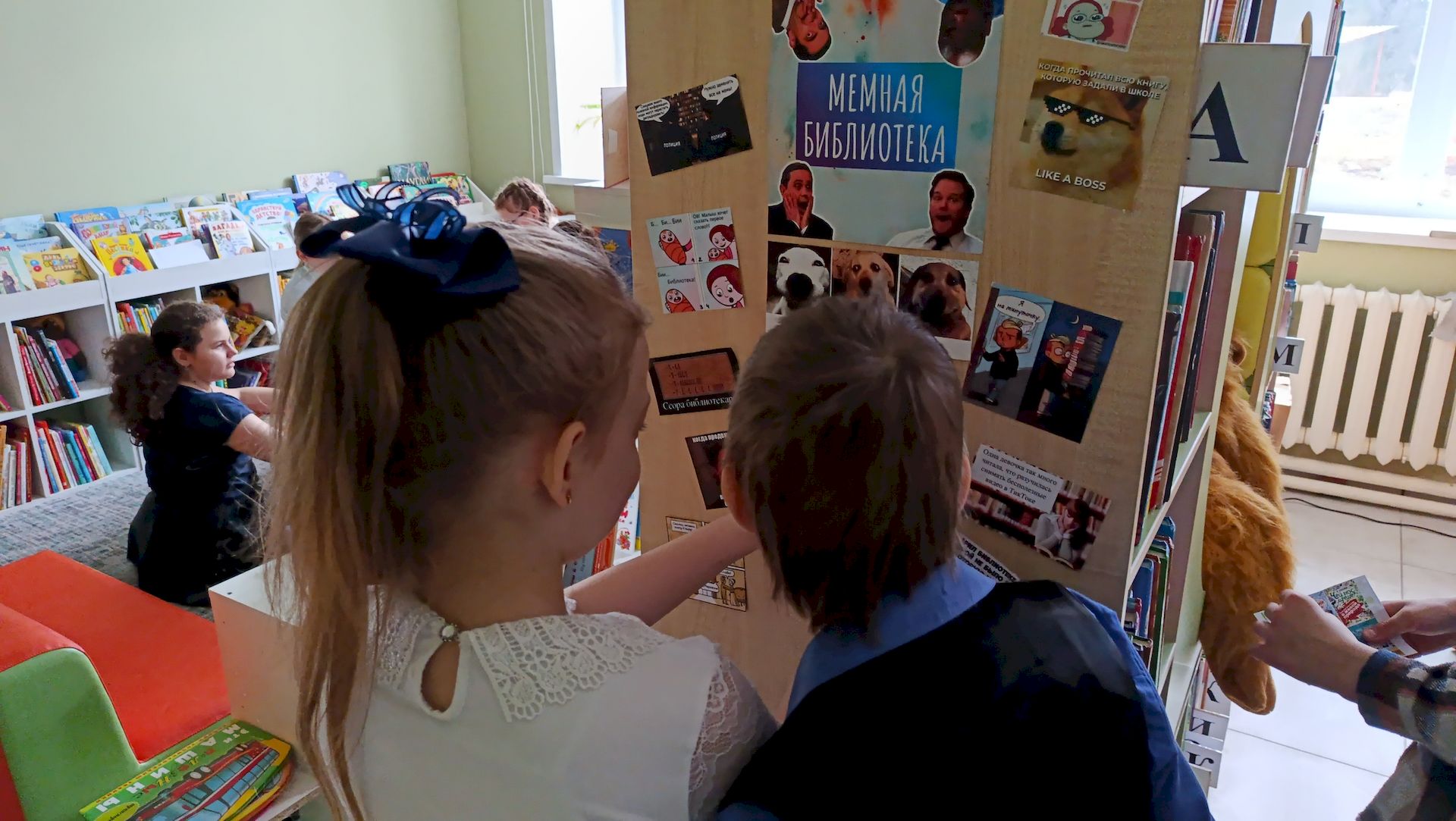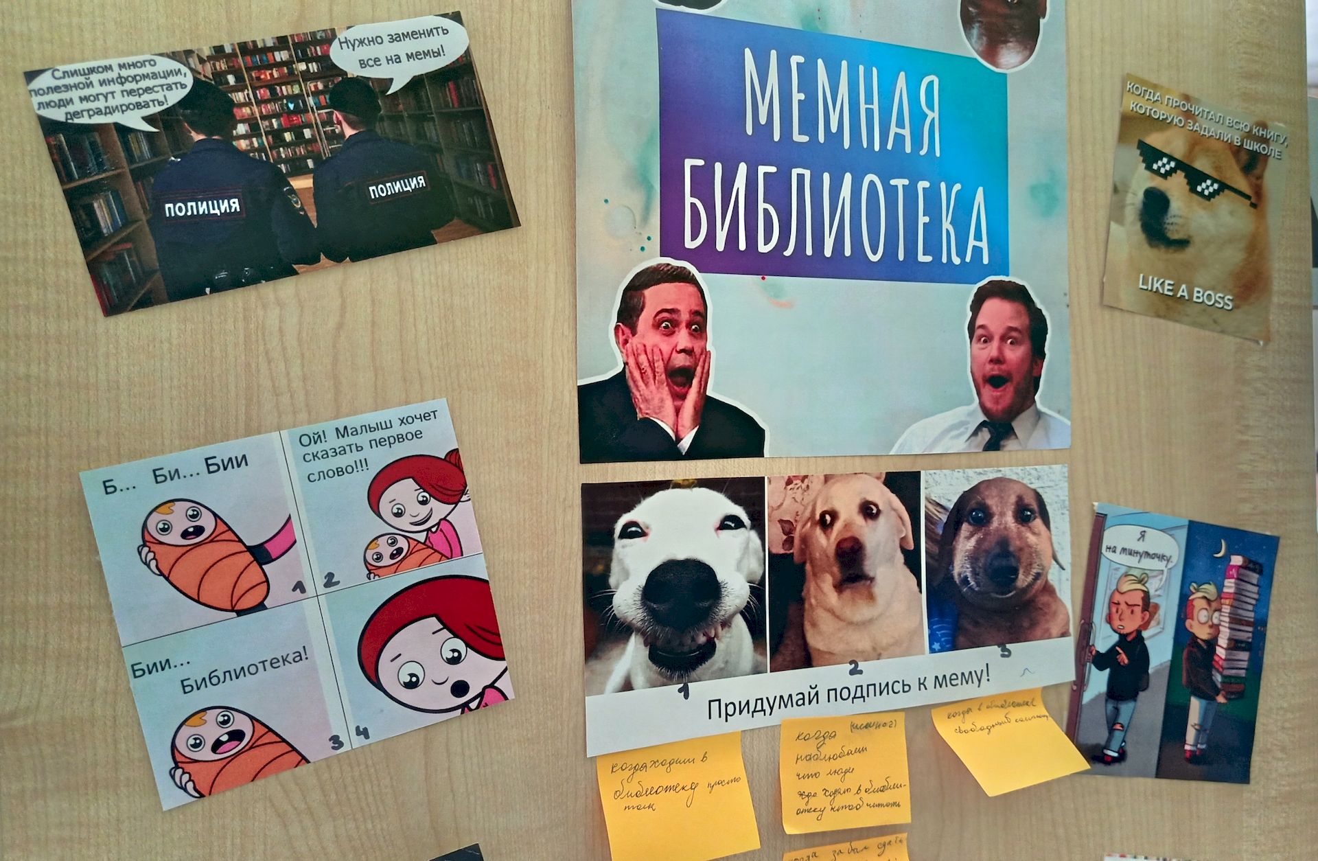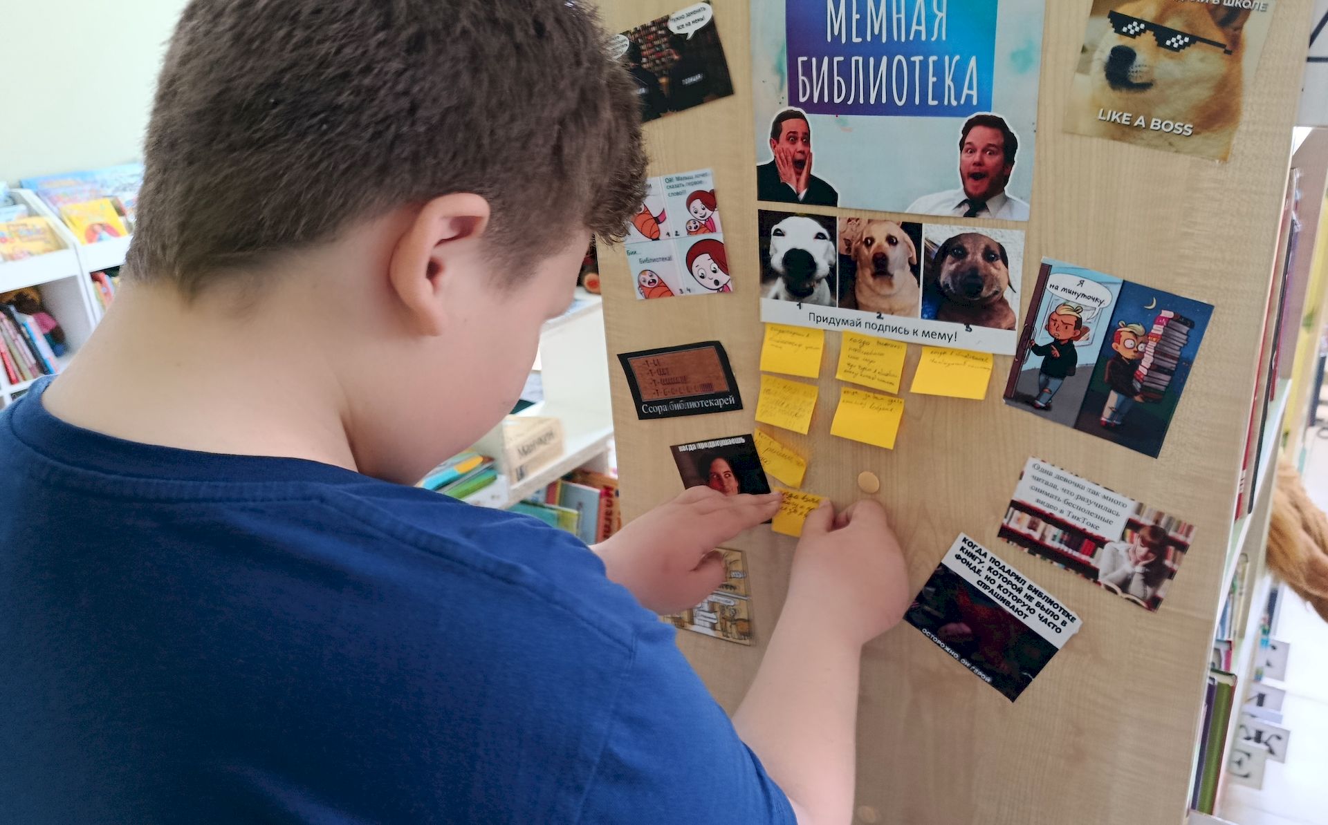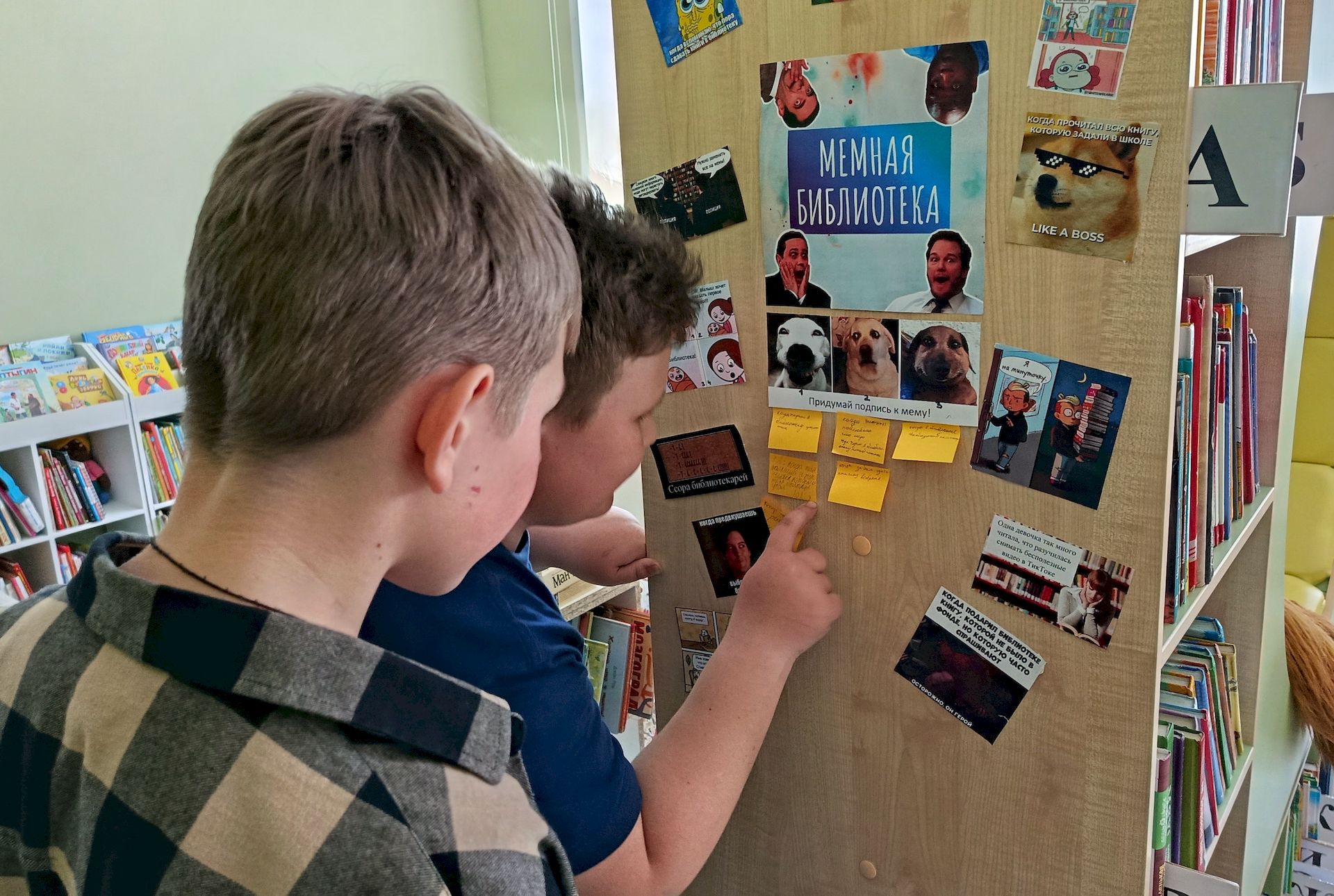 29.04.2026В Районной детской библиотеке для юных читателей был оформлен квилт «Мемная библиотека», где любой желающий в течение апреля мог почитать смешные мемы о чтении, книгах и библиотеке, а также придумать подпись к трём разным мемам, которые сейчас популярны в социальных сетях. Ребята активно проявляли фантазию и писали свои интересные и смешные идеи.
