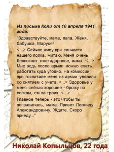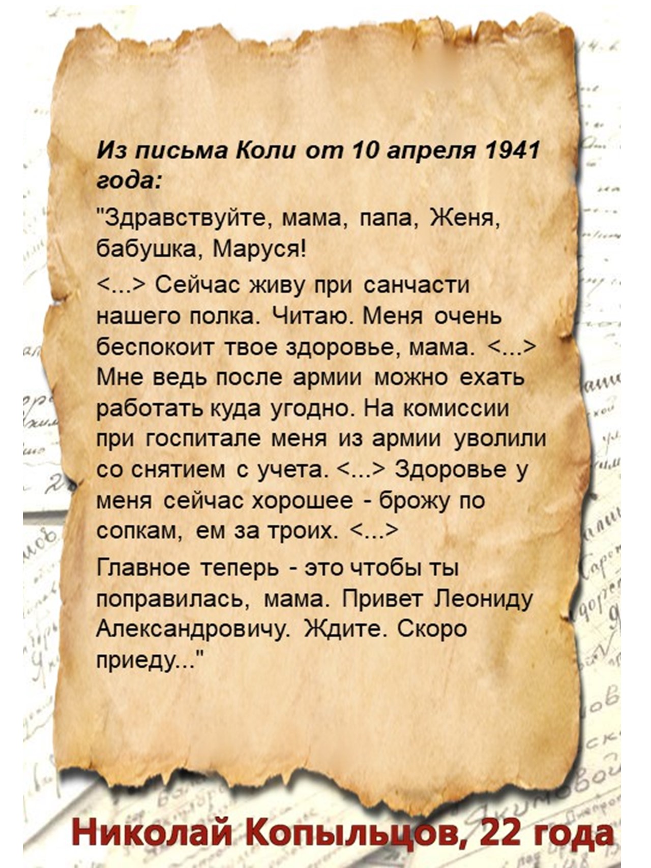 Осенью 1942-го в Бийск в дом на улице Форштадской пришла похоронка. Николай Копыльцов погиб во время боев за Синявинские высоты. Ему было 22 года.