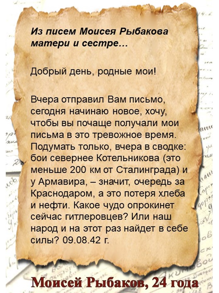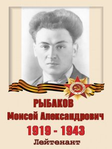 17 июля 1943 года в возрасте двадцати четырех с половиной лет капитан Моисей Рыбаков пал смертью храбрых при подготовке переправы наших наступающих войск через реку Миус.