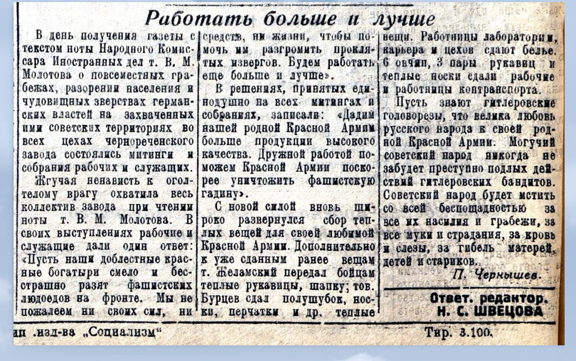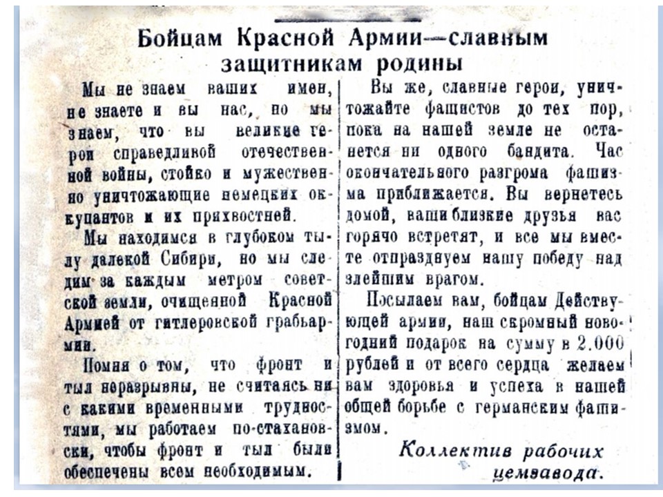 Бойцам Красной Армии - славным защитникам родины (09 января 1942)