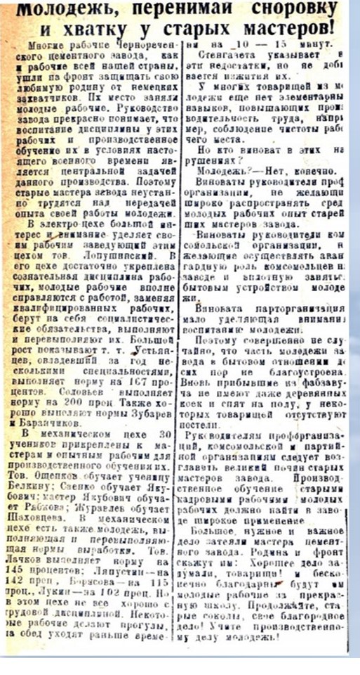 Молодежь, перенимай сноровку и хватку у старых мастеров! (25 октября 1942)