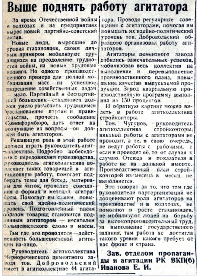 Выше поднять работу агитатора (22 июля 1944г.)