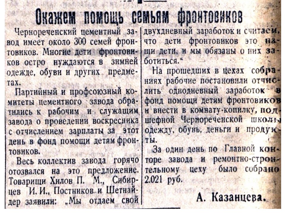 Окажем помощь семьям фронтовиков (13 июля 1944г.)